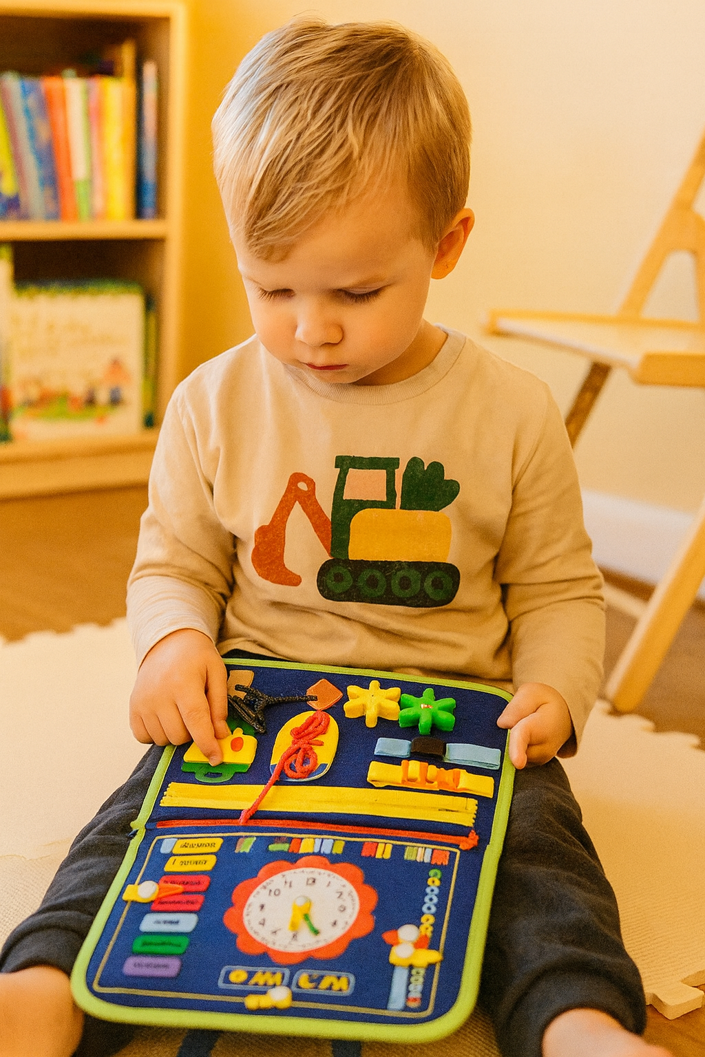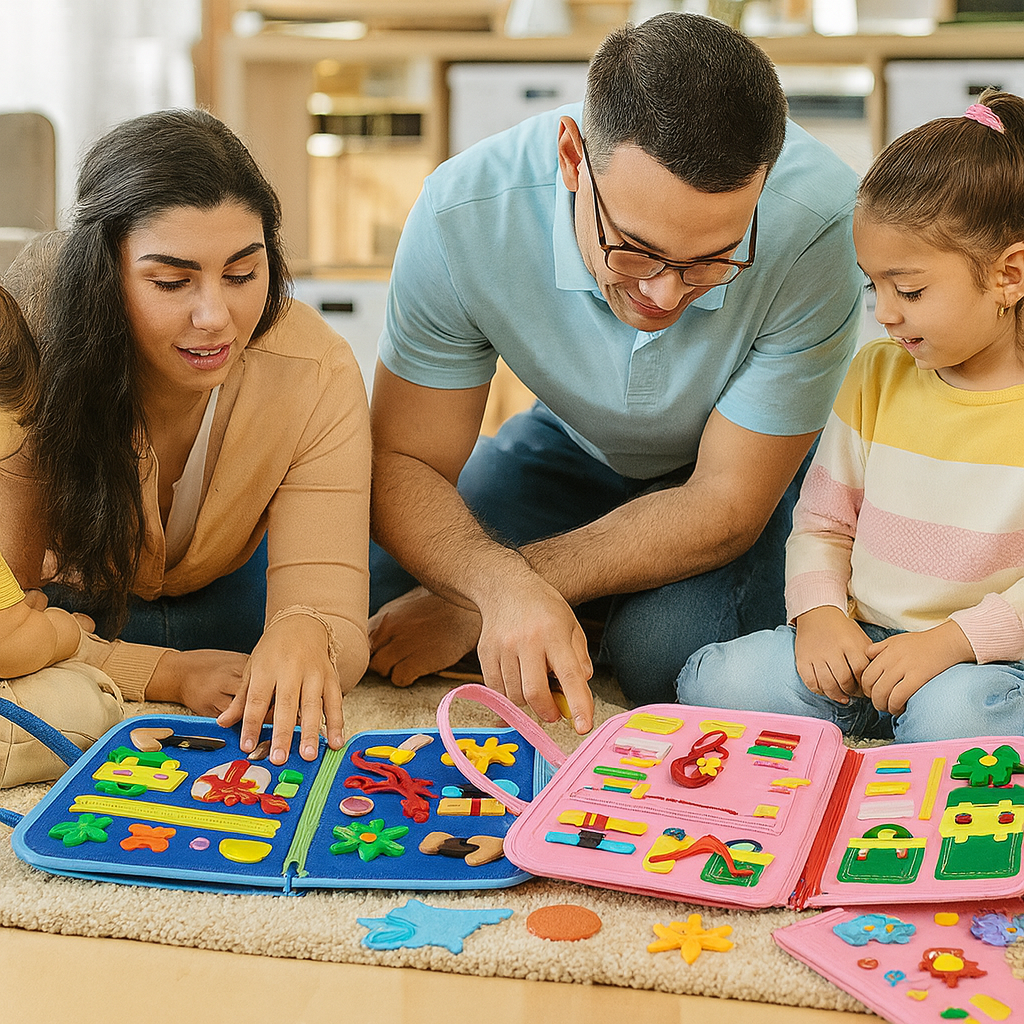 Den färgglada aktivitetsboken är en pedagogisk leksak för barn mellan 1 och 4 år som vill lära sig grundläggande färdigheter. Vår Montessori-bok har 5 sidor, 7 teman och innehåller 26 olika aktiviteter – inklusive vardagsfärdigheter, alfabetet, siffror, väder, djur, färger och kläder. Den taktila boken simulerar vardagliga situationer och hjälper barnet att öva på viktiga färdigheter genom lek.