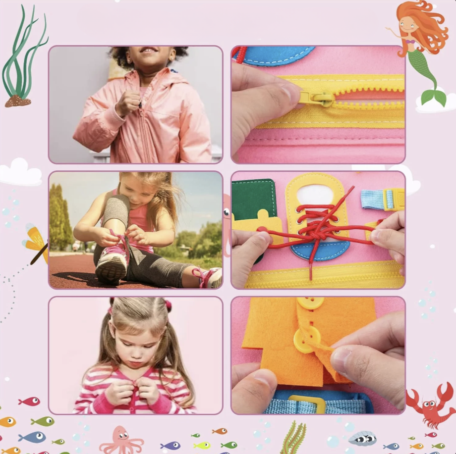 Klick & Klura hjälper barn att träna viktiga vardagsfärdigheter som att knäppa, knyta och dra upp –